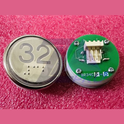 Кнопка "32" с шрифтом Брайля, синяя подсветка BR34C Xizi Otis