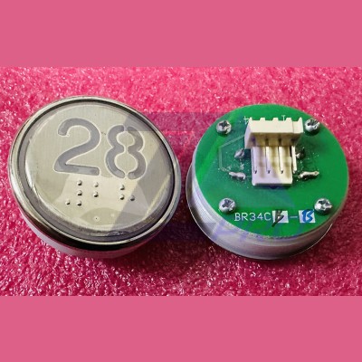 Кнопка "34" с шрифтом Брайля, синяя подсветка BR34C Xizi Otis